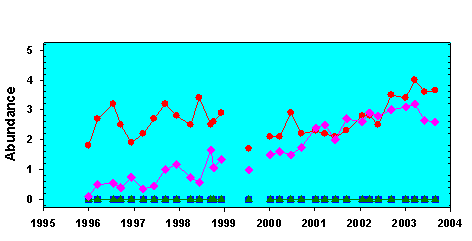 In 2003, we resurveyed 202 Level 2 and Level 3 stations that were last visited during the summer of 1996. The data collected on these visits is still being assessed, but preliminary analyses indicate that there are no large spatial scale trends in the abundance of the dominant benthic plant types between the 2 years.